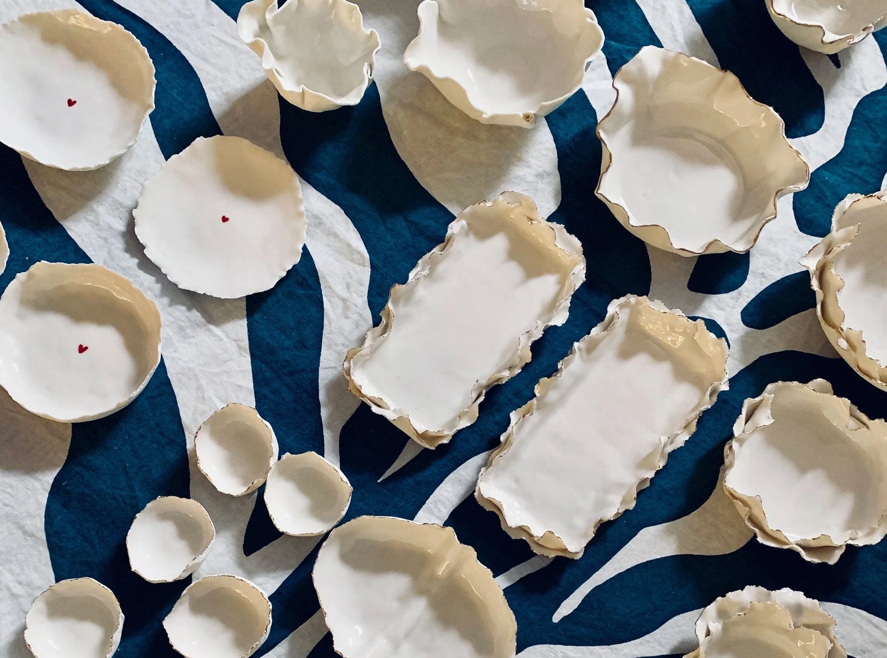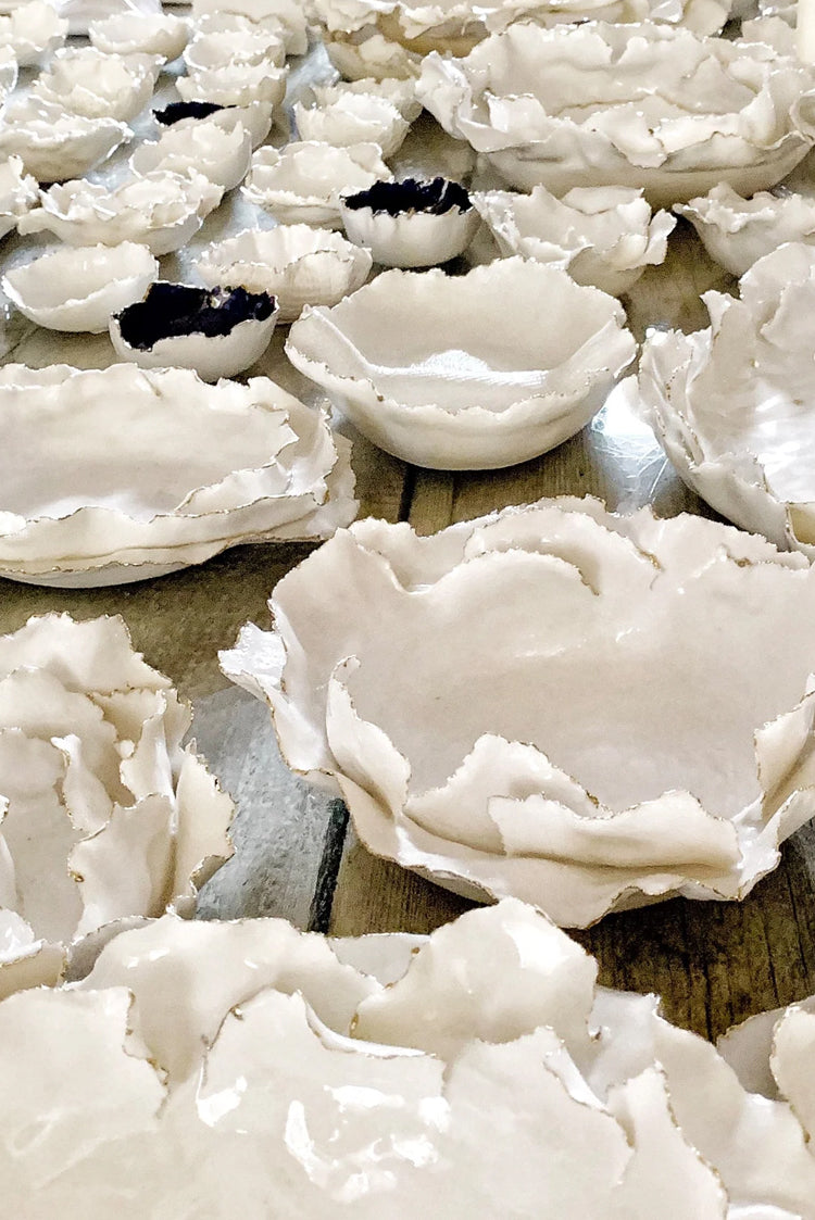 Handmade locally in a small studio in Notting Hill, this stunning porcelain 'Deco Jagged' dish with delicate hand painted gold edging adds that final special touch to your table.